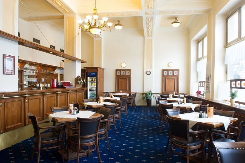Pestrá nabídka tradiční české kuchyně a domácích moučníků připravených s využitím regionálních surovin, vynikající plzeňské pivo a moravská vína v příjemném prostředí nově zrekonstruovaného secesního hotelu.